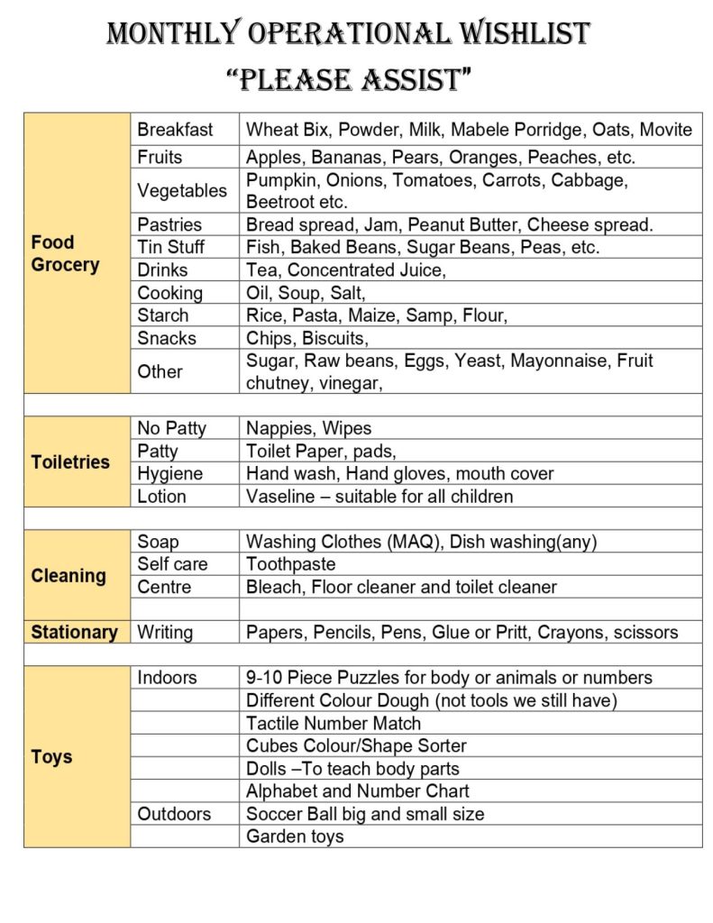 “We have a wishlist of essential items and groceries that we use on a daily basis to care for the children and prepare their meals.”